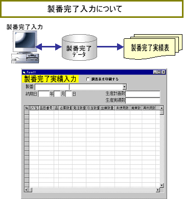 ◆「製番完了入力」は、製番の最終実績を入力した後で実行されます。