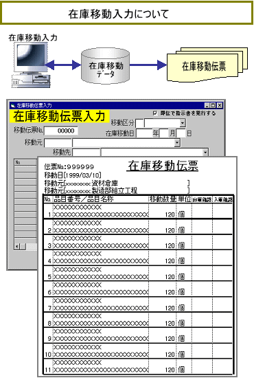◆「在庫移動入力」は、品目の移動実績を入力します。