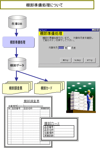 ◆ 「棚卸準備処理」は、現在の理論在庫をベースに、棚卸データを作成します。