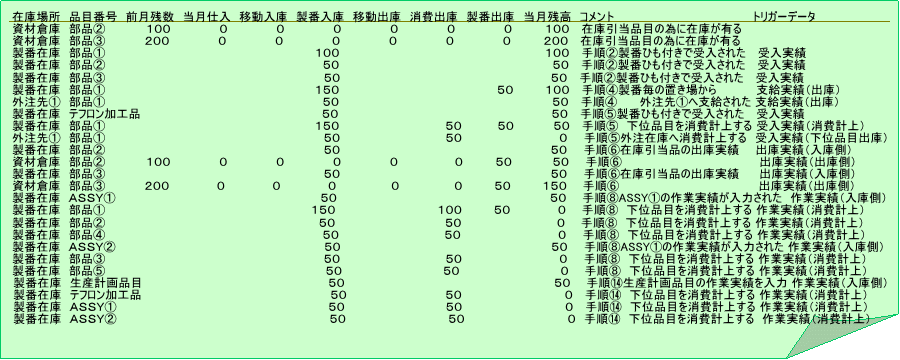 ・在庫DBでは、在庫の移動実績を在庫場所毎に更新します。