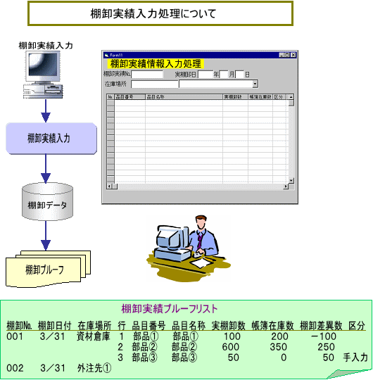 ・入力された結果を元に、棚卸実績プルーフを出力し、入力内容のチェック処理を行います。